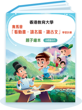 香港教育大學「賽馬會『看動畫.讀名篇.識古文』學習計劃」配合香港教育局第一及第二學習階段共40篇文言建議篇章,提供小一至小六學生程度的多媒體學習內容。初小藉體驗中華文化,植下興趣的種子,以達到語文及文化知識兼備的「階梯式進展學習」效果。高小則通過文物圖像、地圖等方式,呈現相關朝代、地理、禮俗、衣飾、飲食的特色,讓學生以生動、多感觀互動方式,愉快學習,並促進「中國語文──中國歷史文化地理」學習的協同效益。